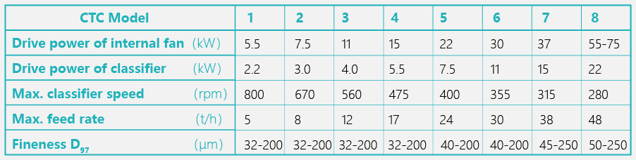 注: 產(chǎn)能或產(chǎn)量與原料的細度、密度、水分和流動能力密切相關。以上數(shù)據(jù)僅供選型參考。